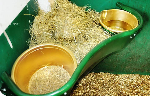 QUICK TO FILL The Feeding Station corner hay feeder is QUICK TO FILL compared to the tedious stuffing of hay nets. The Feeding Station can hold a whole (small) rectangular bale of hay which could feed your horse for up to 48 hours. *No need to stuff hay nets, drag them across your yard and then clear the mess up afterwards. This should leave your yard and stable looking a lot cleaner. We estimate you could save up to 20% off your hay bill per year. This is calculated upon the amount of hay which is wasted when filling up hay nets, and the mess left by your horse in its stable.*Please DO NOT use the Feeding Station hay feeder to avoid daily monitoring and care of your horses
